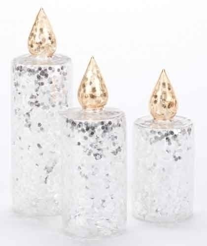 Set of 3 Silver Glitter Sequined Glass Christmas Pillar Candles